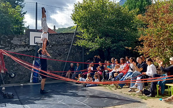 Plusieurs sujets ont été abordés, tels que la circulation devant l’école du Village et la sécurité. Et pour la première fois, le spectacle de fin des rencontres s’est déroulé dans la cour de l’école du Village. Jongleries, cirque, humour étaient les maîtres mots de « Cadie à Cadie » de la Cie Sonel, confrontant le monde d’hier et celui d’aujourd’hui représentés par deux cadies : un analogique et un numérique.